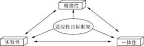适应性目标框架构建,核心在于建立动态调整的系统性目标体系,通过嵌入弹性机制、多维度适配与动态校准功能,实现目标设定与环境变化、需求演进的精准匹配。本文通过理论溯源与框架重构,提出适应性目标的三大维度:精准性(问题识别的准确度)、实效性(治理成果的达成度)、一体性(治理单元的良性互动),旨在精准锚定治理痛点、系统整合治理资源、动态评估治理效能,从而在复杂多变的边疆环境中筑牢安全底线、激活发展动能,最终实现边疆长治久安与国家整体安全的协同互促。其立体结构示意图如下。