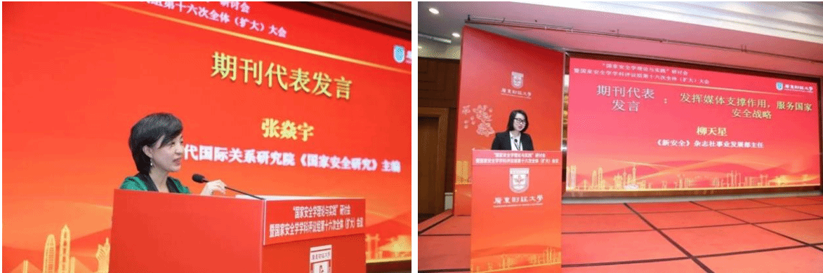 《国家安全研究》编辑部代表张焱宇与《新安全》杂志社事业发展部主任柳天星分别进行代表发言,前者向学科评议组、编委会和大会汇报了刊物的发展历程和未来规划,并宣布了2025年最新的八大选题方向。后者强调媒体于国家安全体系的关键支撑作用。
