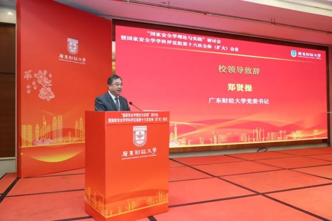 开幕式上,广东财经大学党委书记郑贤操向与会的各位领导和专家表示热烈欢迎,并介绍了学校办学特色与国家安全学学科建设情况,提出学校将立足湾区,聚焦国家安全重大理论和实践问题,以经济安全为主攻方向,打造国家安全学自主学科体系,发挥科研和人才培养优势,为守护国家安全 “南大门” 贡献力量。
