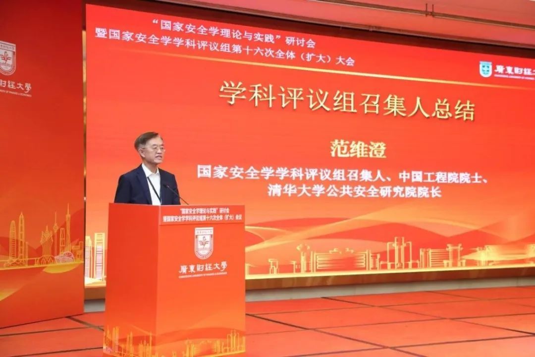 会议最后,国家安全学学科评议组召集人、中国工程院院士、清华大学公共安全研究院院长范维澄进行了总结讲话,他回顾了国家安全学一级学科的发展历程,肯定了学科评议组在推动学科建设方面所取得的成就。范维澄教授并强调要以总体国家安全观为统领,高度重视学理性探究,充分展现古今中外的深厚时空底蕴,切实做到理论与实践紧密结合,突出跨门类学科的交叉融合特性。