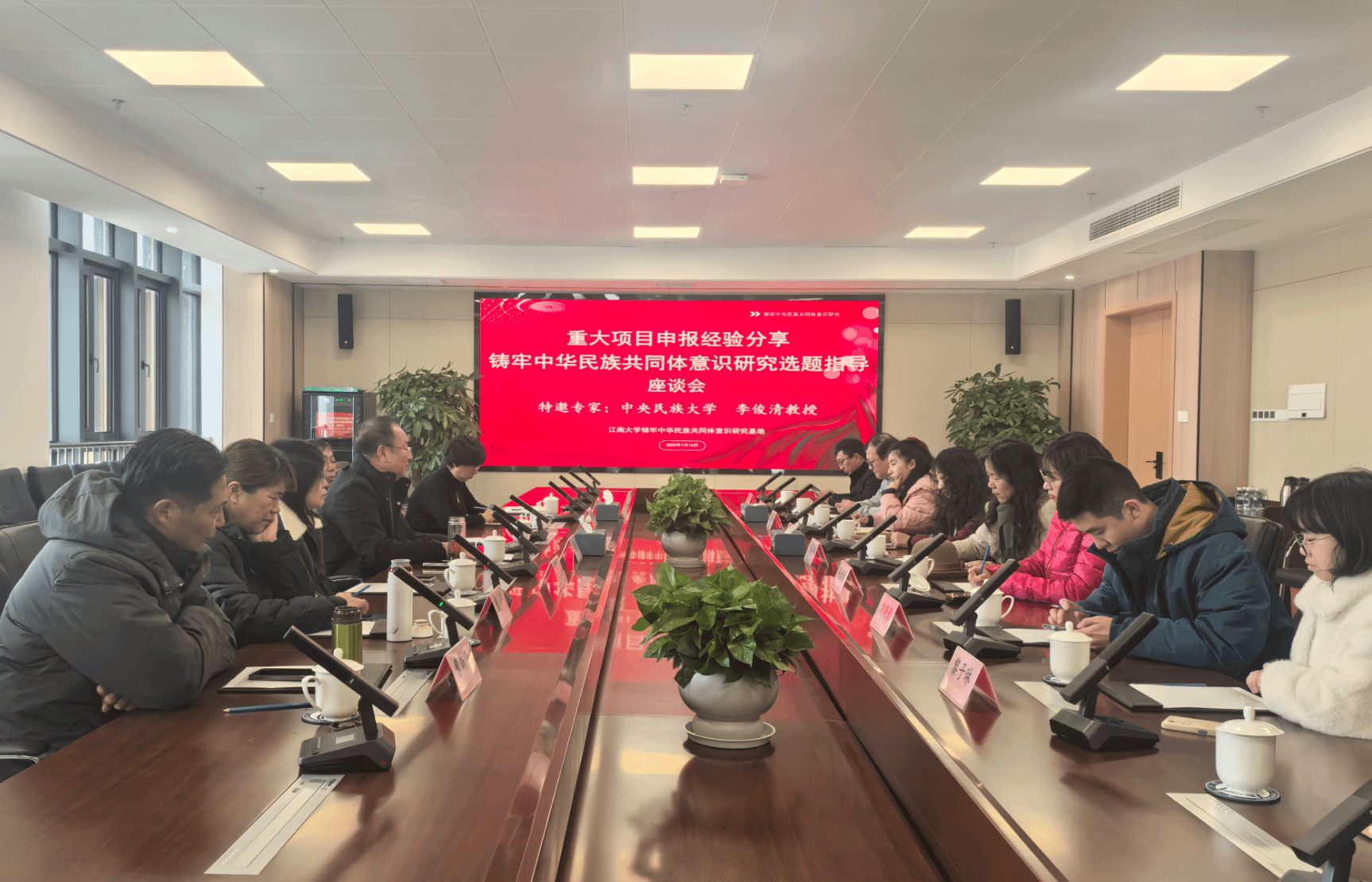 在江南大学江阴校区,调研组一行实地参观了学校图书馆等区域,详细了解该校区的建设情况,随后就“重大项目申报经验分享与铸牢中华民族共同体意识研究选题指导”课题进行座谈。