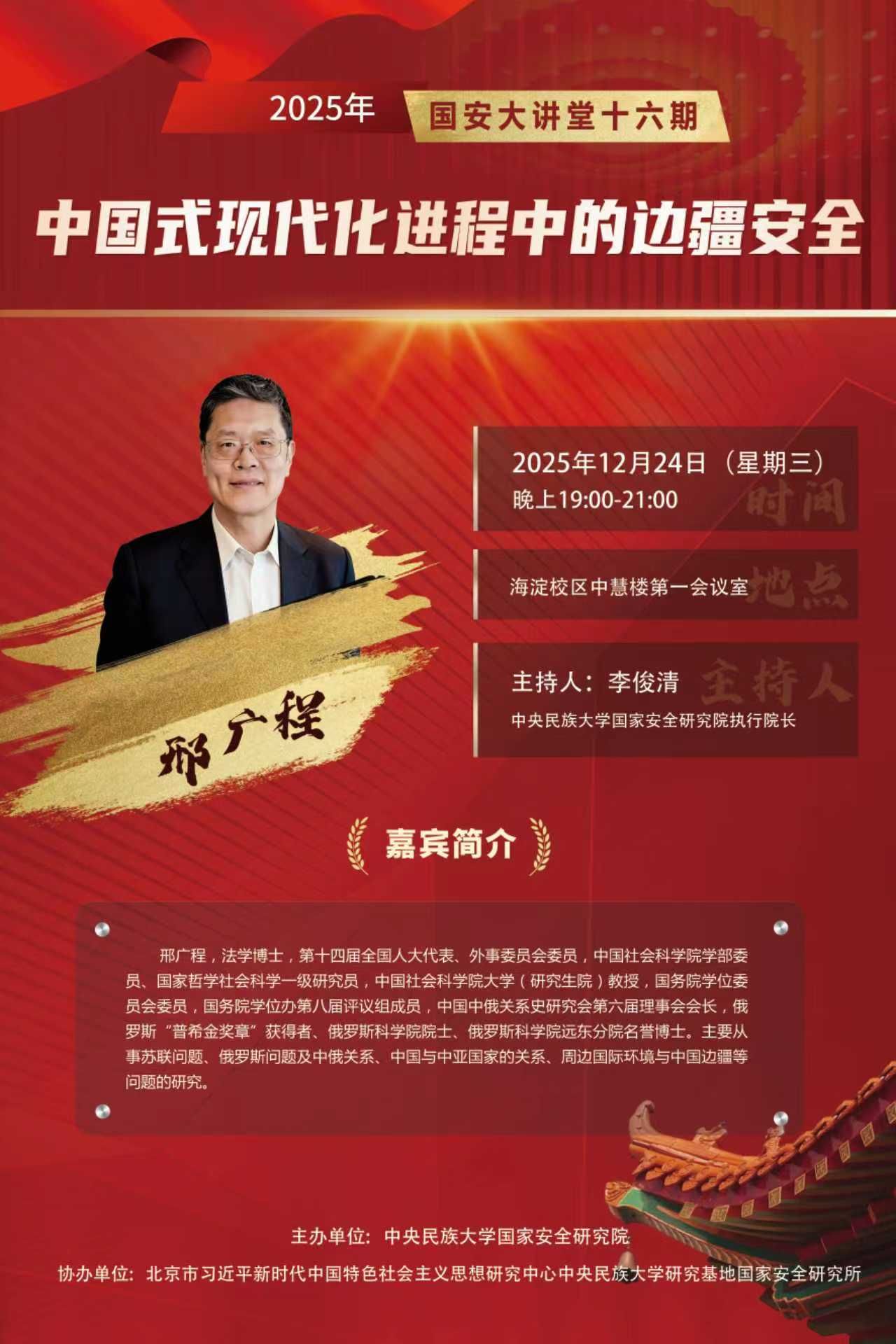 将于2025年12月24日举办“国安大讲堂”第十六期,具体安排如下: