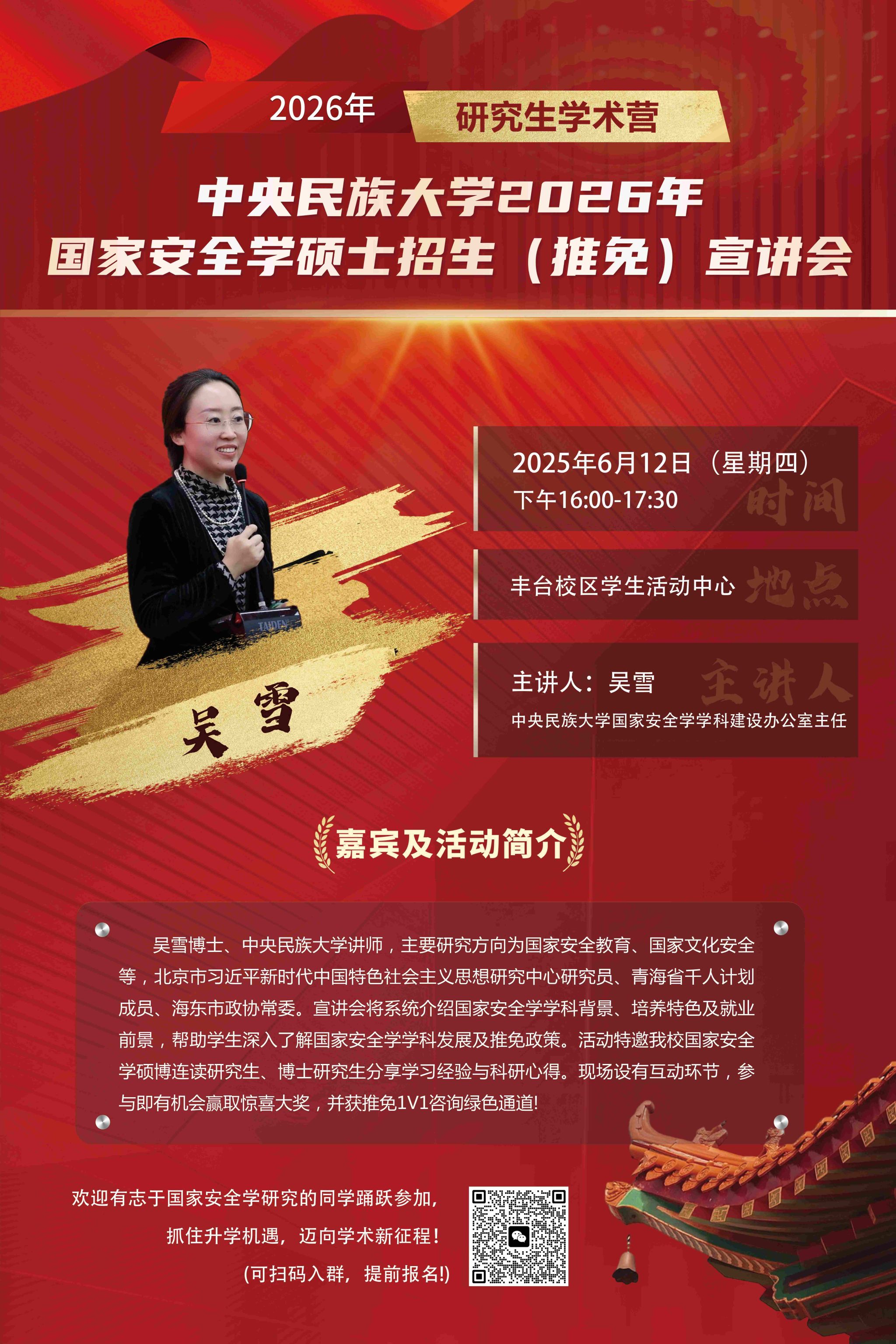 国家安全学硕博连读研究生、博士研究生分享学习经验与科研心得。现场设有互动环节,参与即有机会赢取惊喜大奖,并获推免1V1咨询绿色通道!